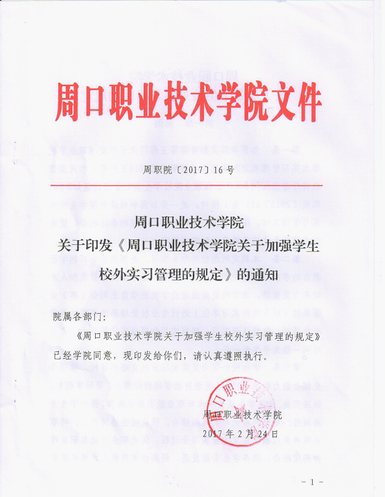学院关于印发《yl23411永利(集团)有限公司官网关于加强学生校外实习管理的规定》的通知