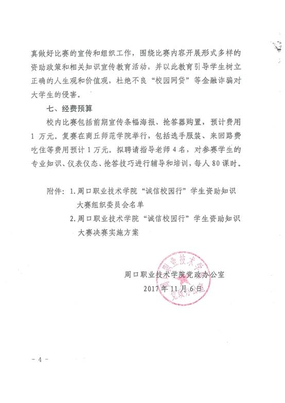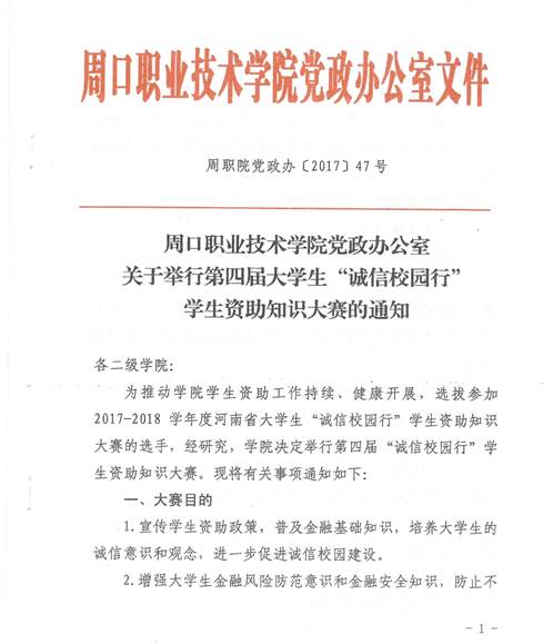 yl23411永利(集团)有限公司官网党政办公室关于举行第四届大学生“诚信校园行”学生资助知识大赛的通知