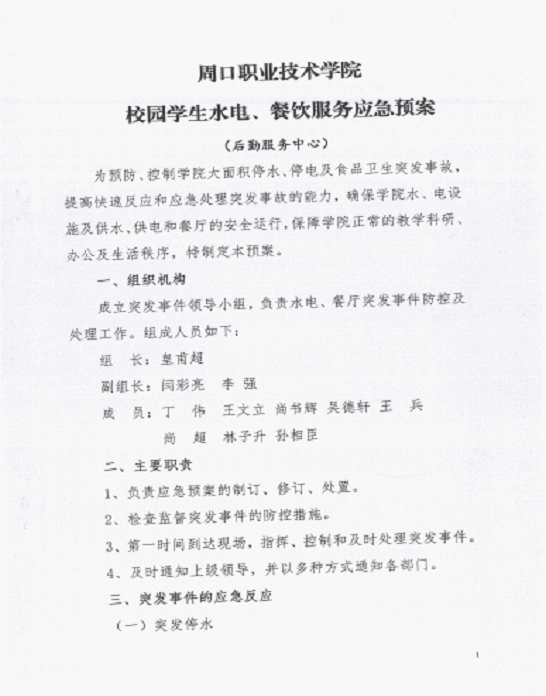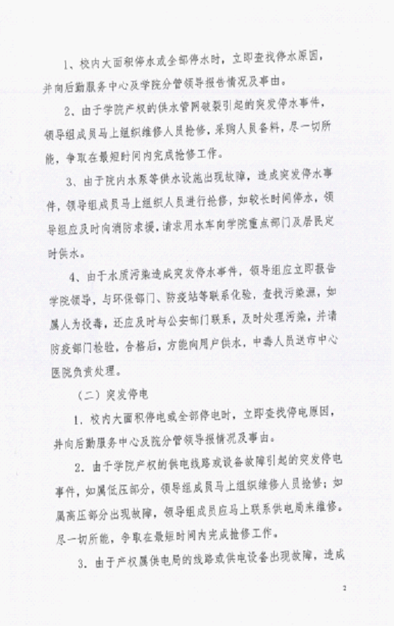 学院学生水电、餐钦服务应急预案