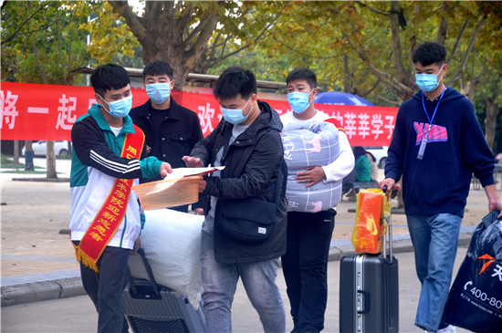 “从进校注册到入住宿舍都有学长学姐接待,虽然爸妈不能陪我进校园,但是学长学姐就像哥哥姐姐一样,我们感觉很温暖、很踏实。”来自商丘柘城的2020级医学院的一名新生说,进入学校,老师们的嘘寒问暖,学长们的热情帮助让自己感觉到家了一样,内心很感动。