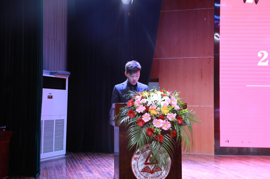 “在周职的三年,最大的收获是让我看到了实现自我突破的无限可能,让我明白,比起做一个成功的人,更应该去成为一个有价值的人!”毕业生代表、农牧工程学院18级畜牧兽医1班学生张宗耀表达了对母校的拳拳眷恋与感恩,并代表同学们表示,毕业是大学三年的精彩谢幕,更是下一段征程的郑重开始。广大毕业生将牢记周职“砺德砺能 志存高远”的校训,在社会的各行各业都尽情施展才华!