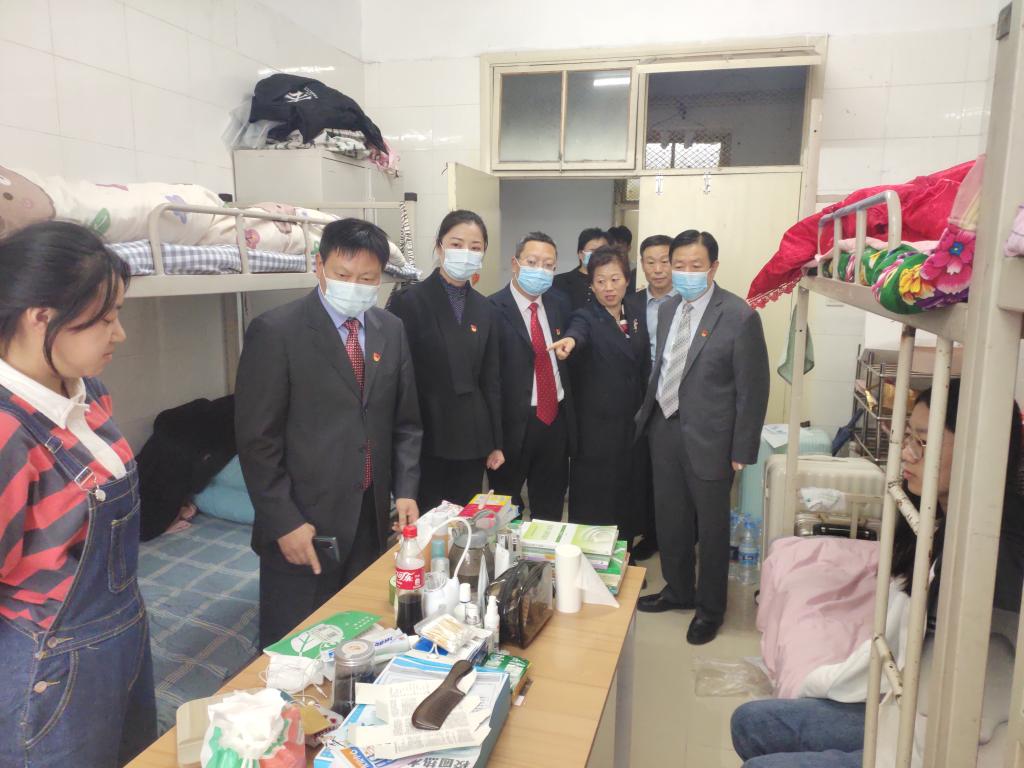 在新生公寓,校领导一行认真查看了升级改造的宿舍各项设施与卫生环境,要求相关工作人员要认真排查安全隐患,增强主动服务意识,以学生为本,做好精细化服务,努力提升管理与服务品质,做好常态化疫情防控下的宿舍管理工作。在学生食堂,校领导一行重点检查了食堂的卫生条件、就餐环境及食品价格,向就餐的新生了解其对学校的满意程度,强调要高度重视食品安全问题,切实保障师生就餐安全。