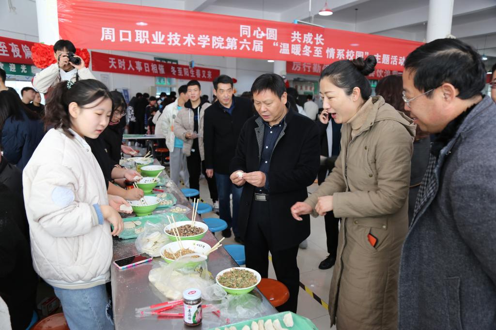 为弘扬中华民族传统文化,丰富校园文化生活,给在异乡求学的同学们带来冬日暖意,进一步增进师生感情,促进各民族相互交流、交融。12月21日,我校组织各学院分别开展同心圆 共成长 yl23411永利(集团)有限公司官网第六届“温暖冬至 情系校园”主题活动,校党委书记刘士欣、校长李清臣、副校长李明臣、副校长李秀萍,各二级学院党总支书记、院长、学管人员及部分师生代表共同参加活动。本次活动,学校还专门组织从校园池塘内捕捞数千斤鱼制作成鲜美的鱼汤供师生免费享用。