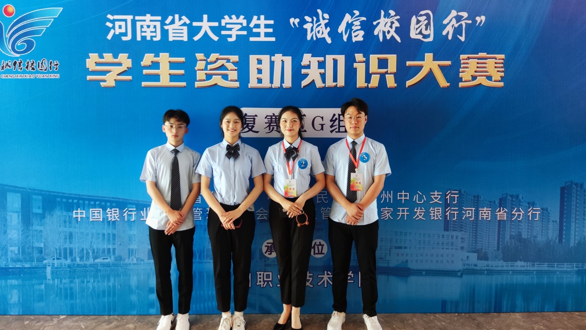 据悉,此次河南省大学生“诚信校园行”学生资助知识大赛以“昂首阔步新时代 树信立德展风采”为主题,由河南省教育厅、中国人民银行郑州中心支行、中国银行保险监督管理委员会河南监管局、国家开发银行河南省分行联合主办。此次大赛G组共有21所高校代表队同台竞技,分为个人必答题、第一轮抢答题、集体必答题等环节流程,各代表队选手热情高涨、斗志昂扬,展现了良好的精神面貌和激昂的青春风采。