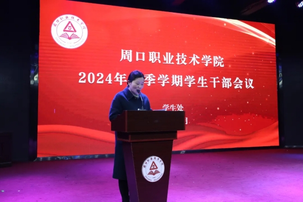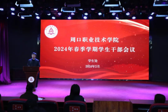 为进一步加强学生干部队伍建设,增强学生干部队伍的凝聚力和向心力,统筹做好新学期学生工作,促进新学期学生工作再上新台阶,3月12日,我校在学艺演播厅召开2024年春季学期学生干部会议,学生处处长刘冬霞,学生处副处长王换换,学生处相关老师及自律委员会全体学生干部参加,会议由学生教育管理科科长王资霖主持。