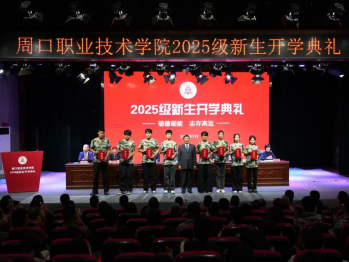 党委副书记李明臣代表学校全体教职员工向2025级新生表示热烈欢迎,向辛勤付出的教官和老师致以崇高敬意。他介绍了周口的深厚文化底蕴,希望这片古老的土地能够给予同学们滋养,丰满青春记忆。随后,他回顾了学校的奋斗历程,并从专业设置、办学条件、所获荣誉等方面进行介绍。