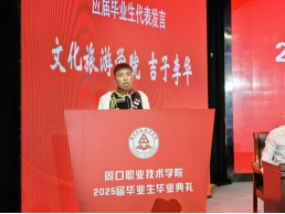 2025届毕业生代表文化旅游学院吉子李华同学以“感恩母校、感谢恩师、踔厉奋发、展望未来”为主题,感谢学校三年来的辛勤培养,感恩老师的一路守护,并表示今后会始终牢记母校恩情,砥砺前行,为实现人生理想努力拼搏。