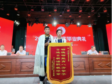 发言结束后,吉子李华同学怀着崇敬之心向母校赠送锦旗,鲜红的旗帜上镌刻着感恩的话语,不仅是对母校培育的真挚致谢,更是周职精神代代传承的生动写照。这面锦旗,承载着师生深情厚谊,也象征着新的征程中周职精神将继续熠熠生辉。